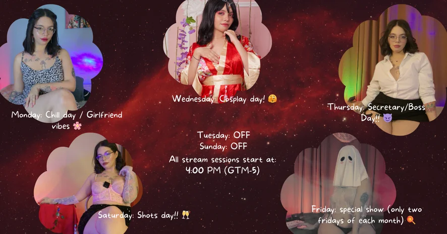A Cuatro, Baile Erótico, Cameltoe, Dildo o Vibrador, Dirty Talk, Estriptis, Flashing, Masturbación, Show con Aceite, Toples, Ahegao, Azotes, Cuckold, Twerking, Cock Rating, Dedos, Juego de Roles, Juguetes Sexuales, Mamada, Vaquera, Humillación, Jerk-off Instruction, Juguetes Anales, Orgasmo, Squirting, Tacones